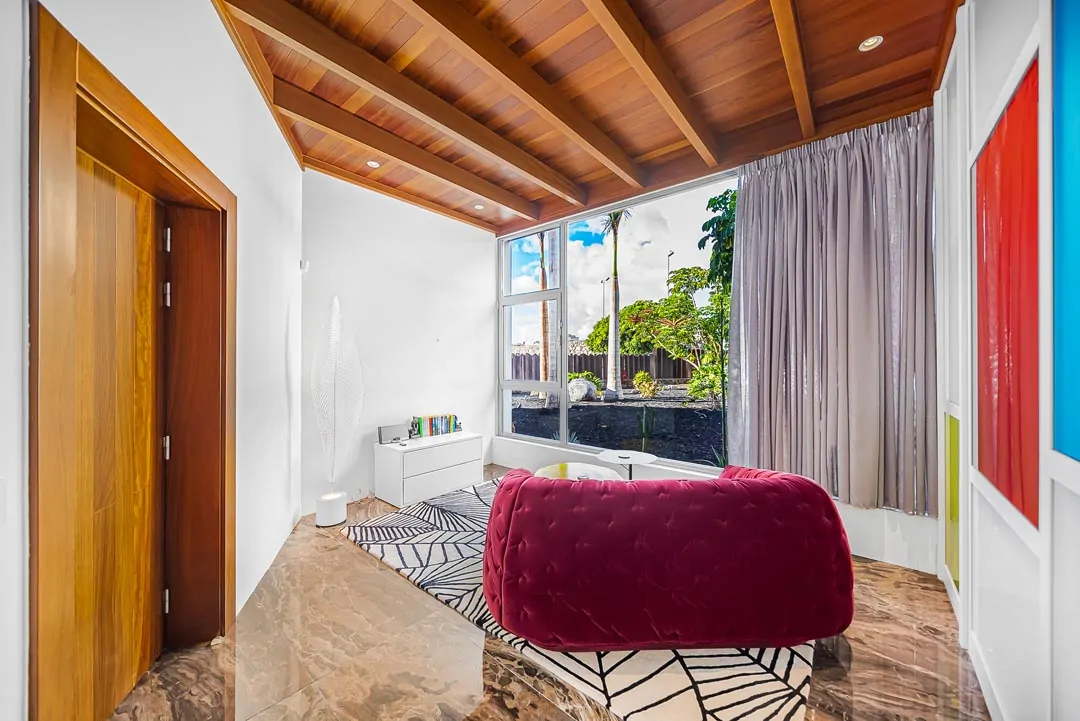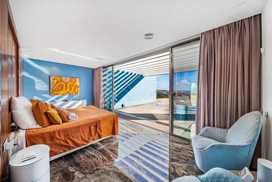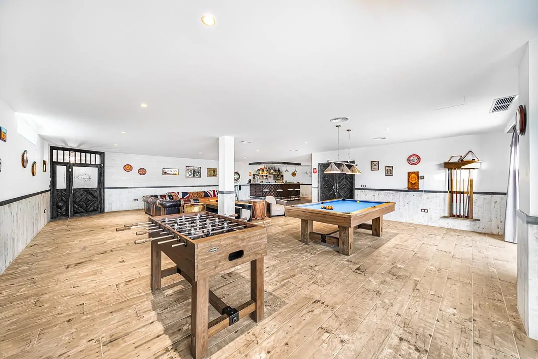 8 large ensuite bedrooms, a fully equipped open planned kitchen and two living areas. 3 bedrooms are upstairs with terraces one bedroom is located in the main living area with a cool twist to it and downstairs we have a huge fully equipped 2 bed apartment with living room. next to this we have a spacious gym perfect for functional training a bar games room with brunswick table tennis and pool table. perfect space for a retreat