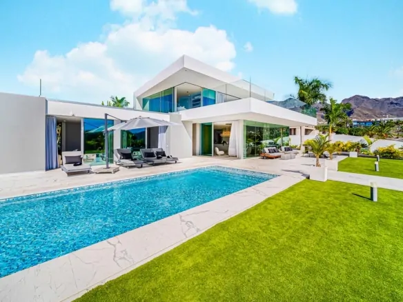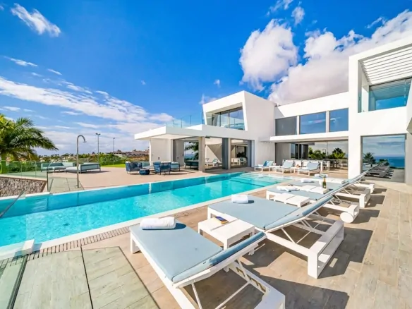 The Master bedroom boasts an en-suite bathroom, a dressing room, underfloor heating, free-standing bathtub with a wonderful view of the Atlantic Ocean. The property was completely renovated in 2020 to a very high standard throughout. The perfectly landscaped garden is great for chilling out and enjoying the Tenerife climate. The property has a pool bar as well as many terrace areas.